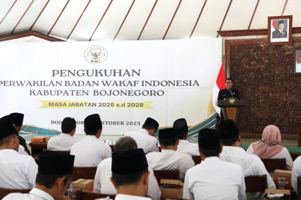 Pemkab Bojonegoro melalui Bagian Kesejahteraan Rakyat (Kesra) menggelar acara pengukuhan Perwakilan Badan Wakaf Indonesia (BWI) Kabupaten Bojonegoro masa jabatan 2025 - 2028, Selasa (7/10/2025) di Pendopo Malowopati. Pengukuhan ini berkaitan dengan dokumen keabsahan wakaf karena penggunaannya yang bersinggungan langsung untuk kepentingan masyarakat.