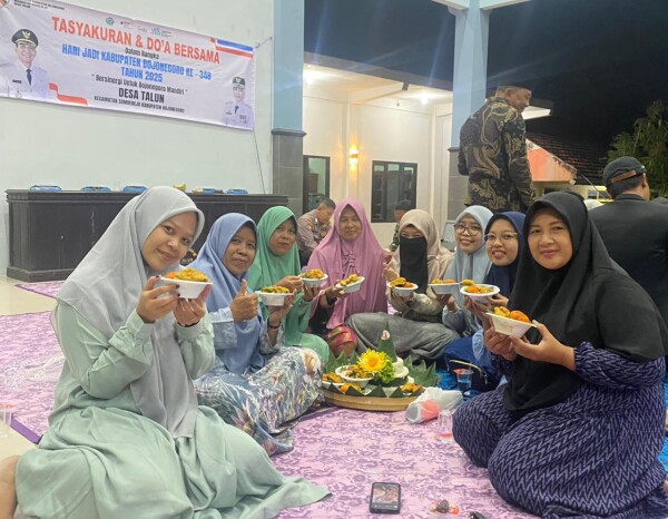 Rangkaian peringatan Hari Jadi Kabupaten Bojonegoro (HJB) ke-348 tahun 2025 ini sedikit berbeda dari tahun sebelumnya. Tidak ada ‘Grebeg Berkah’ di Alun-alun Bojonegoro, namun tasyakuran dan doa bersama dilaksanakan Minggu (19/10/2025), di seluruh desa dan kelurahan. Salah satunya digelar Desa Talun, Kecamatan Sumberrejo.