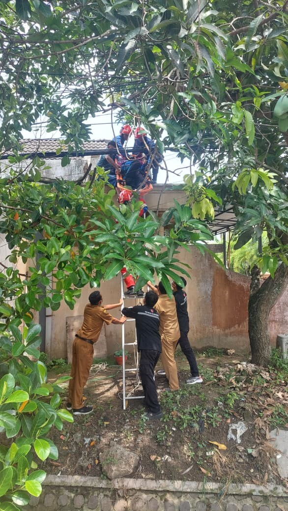Tim dari Dinas Pemadam Kebakaran dan Penyelamatan (Damkarmat) Kabupaten Bojonegoro langsung turun lapangan setelah menerima laporan warga. Tim bergerak mengevakuasi pria lansia yang pingsan di atas rumah di Desa Ngumpakdalem, Kecamatan Dander, Bojonegoro pada Senin (27/10/2025). Korban diketahui bernama Madrawi (65), seorang pensiunan PNS.