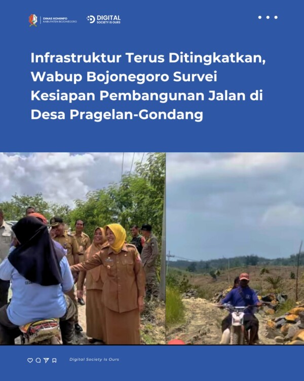 Pemerataan pembangunan terus dilakukan dari tahun ke tahun. Utamanya yang berdampak langsung ke masyarakat. Terbaru, Wakil Bupati Bojonegoro Nurul Azizah beserta jajaran melakukan survei kesiapan pembangunan ruas jalan Dusun Bluru ke Dusun Tretes, Desa Pragelan, Kecamatan Gondang.