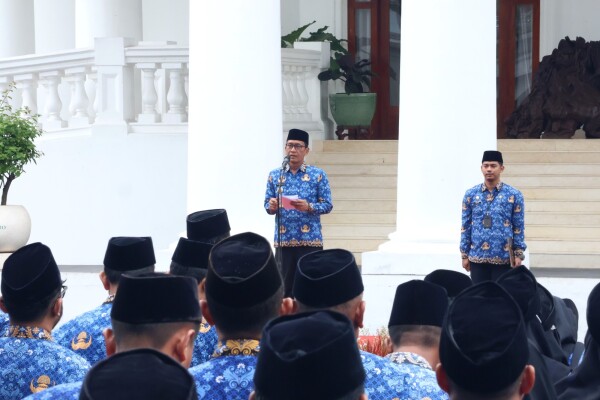 Pemerintah Kabupaten Bojonegoro memperingati tiga momentum besar meliputi HUT Korps Pegawai Republik Indonesia (Korpri) ke-54, Hari Guru Nasional ke-80 dan Hari Kesehatan Nasional ke-61, Senin (1/12/2025) di halaman Gedung Putih. Ketiganya menjadi pondasi penting membangun sumber daya manusia yang berkarakter, berintegritas, berinovatif dan berdaya saing.