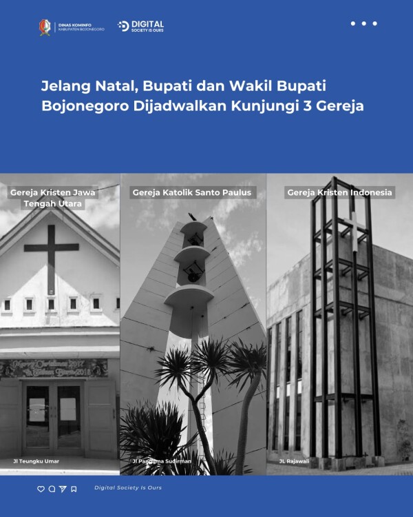 Tiga titik yang akan dikunjungi oleh kepala daerah tersebut adalah Gereja Katolik Santo Paulus di Jl Panglima Sudirman, Gereja Kristen Jawa Tengah Utara (GKJU) di Jl Teuku Umar, dan Gereja Kristen Indonesia (GKI) di Jalan Rajawali Bojonegoro.