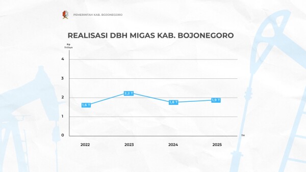 Kabupaten Bojonegoro tahun 2025 ini telah menerima bagi hasil 100 persen dari Dana Bagi Hasil (DBH) Minyak dan Gas (Migas) dari Pemerintah Pusat. Total pendapatan DBH Migas yang diterima mencapai Rp 1,94 triliun.