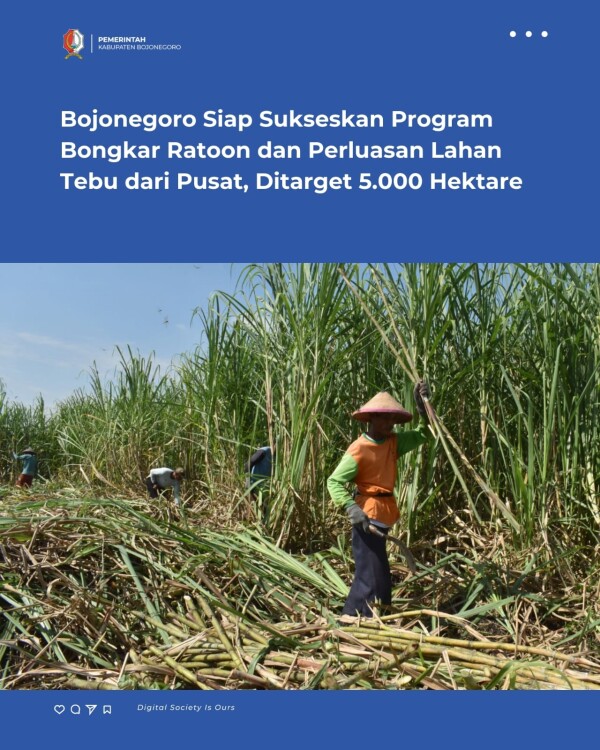 Kabupaten Bojonegoro menyiapkan langkah-langkah untuk merealisasikan program bongkar ratoon dan perluasan lahan tebu seluas 5.000 hektare. Hal ini sesuai arahan Pemerintah Pusat dalam upaya mendukung ketahanan pangan nasional dan peningkatan produksi gula.
