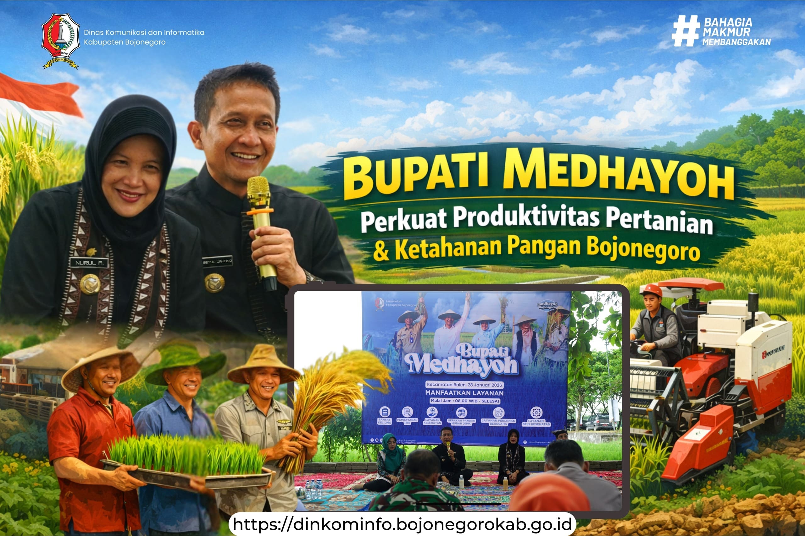 Komitmen tersebut ditegaskan Bupati Bojonegoro Setyo Wahono saat kegiatan Bupati Medhayoh yang digelar Dinas Komunikasi dan Informatika (Kominfo) di Sumur Mojo, Desa Sobontoro, Kecamatan Balen, Rabu (28/1/2026). Dalam kesempatan itu, Bupati menyampaikan bahwa produktivitas padi di wilayah Balen yang saat ini rata-rata mencapai 6,5 ton per hektare masih sangat berpeluang untuk ditingkatkan.
