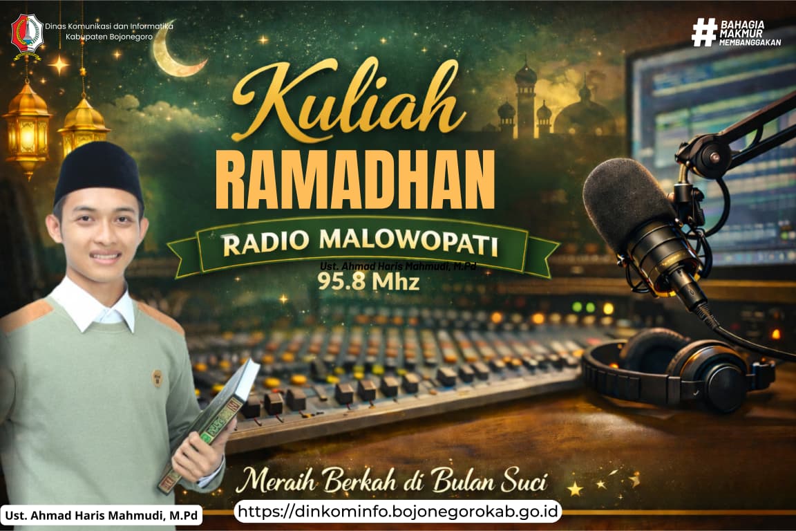 Dinas Komunikasi dan Informatika (Kominfo) Kabupaten Bojonegoro melalui Radio Malowopati FM terus menghadirkan program siaran edukatif dan religius selama bulan suci Ramadhan. Salah satu program kajian keislaman bertema Mashru’iyatus Saumi atau disyariatkannya ibadah puasa yang menghadirkan narasumber Ust. Ahmad Haris Mahmudi, M.Pd. Kajian Ramadhan ini disiarkan langsung dari Studio Radio Malowopati FM, Jalan AKBP M. Soeroko, Selasa (24/2/2026).