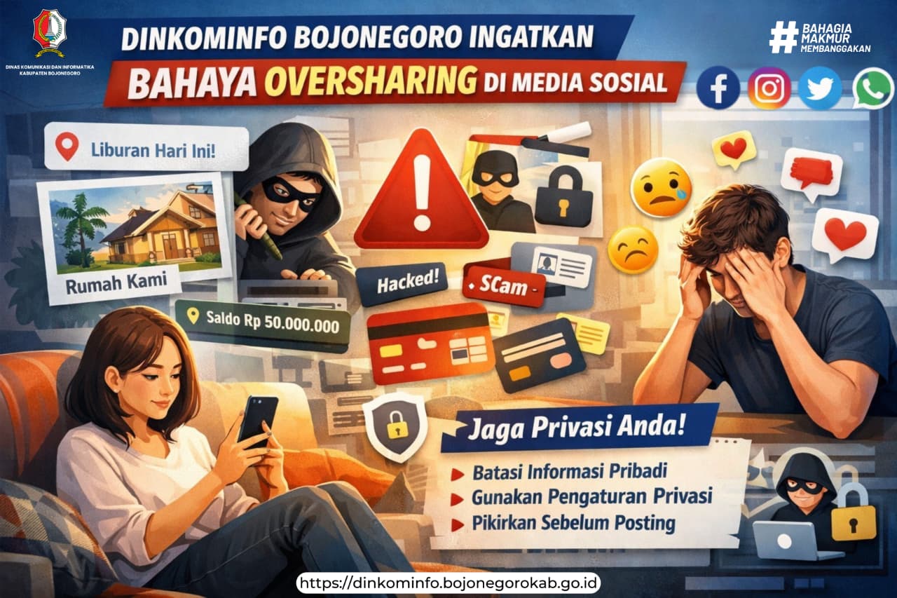 Dinas Komunikasi dan Informatika (Dinkominfo) Kabupaten Bojonegoro mengimbau masyarakat untuk lebih bijak dalam menggunakan media sosial, khususnya terkait kebiasaan oversharing atau membagikan informasi pribadi secara berlebihan di ruang digital.