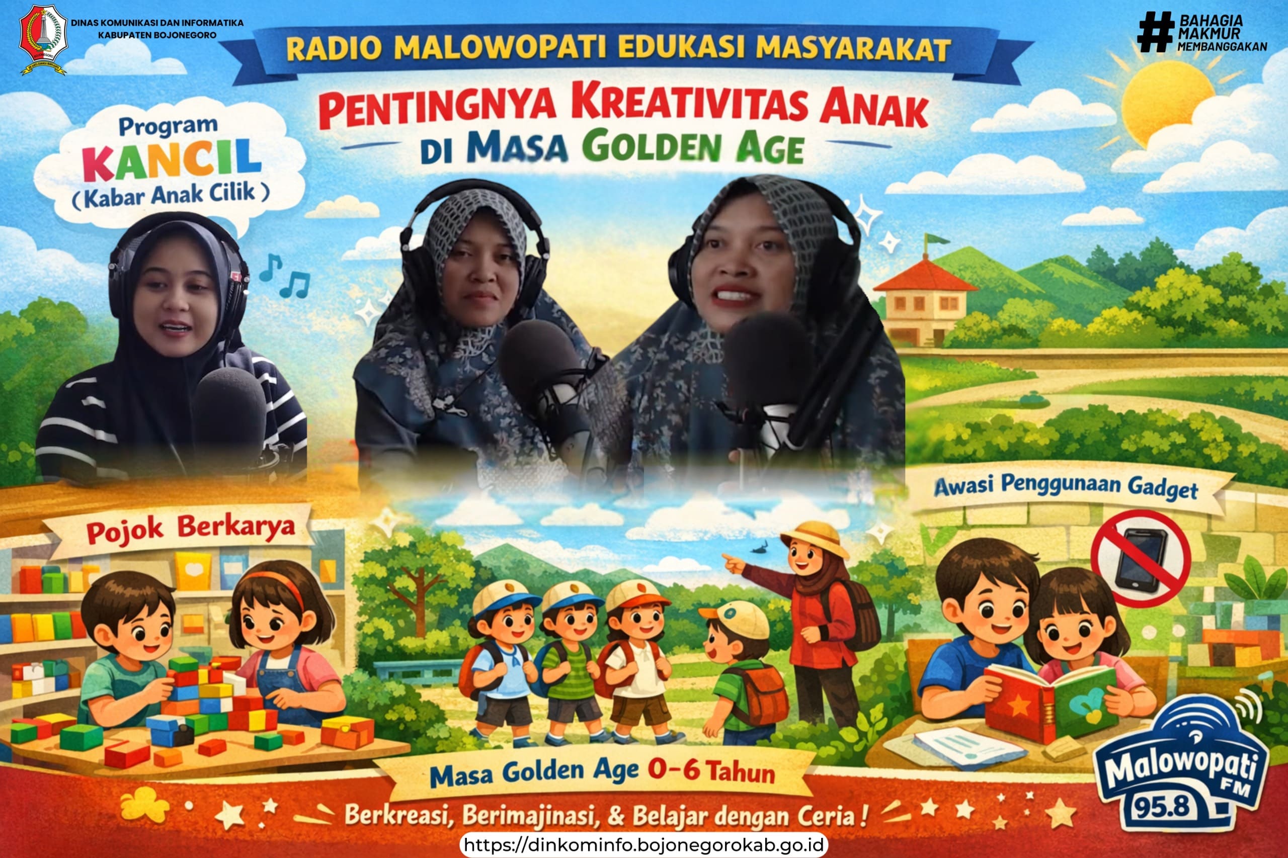 Pemerintah Kabupaten Bojonegoro melalui Dinas Komunikasi dan Informatika (Dinkominfo) terus berkomitmen memberikan edukasi kepada masyarakat melalui Radio Malowopati FM. Salah satunya diwujudkan lewat program “KANCIL” (Kabar Anak Cilik) yang pada edisi Minggu, 12 April 2026, mengangkat tema pengembangan kreativitas anak sejak usia dini.