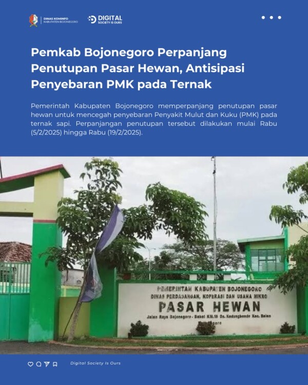 Pemerintah Kabupaten Bojonegoro memperpanjang penutupan pasar hewan untuk mencegah penyebaran Penyakit Mulut dan Kuku (PMK) pada ternak sapi. Perpanjangan penutupan tersebut dilakukan...