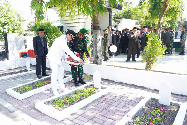 Penjabat (Pj) Bupati Bojonegoro Adriyanto bersama Forkopimda, jajaran kepala OPD, dan tokoh masyarakat melakukan ziarah pahlawan di Taman Makam Pahlawan Jl. KH....