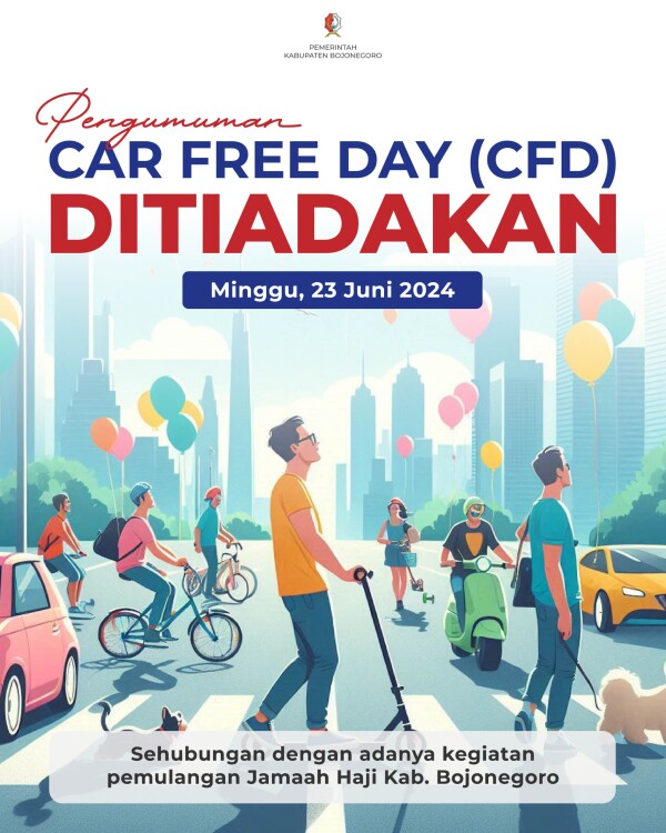 Kegiatan hari bebas kendaraan atau Car Free Day (CFD) di sekitar Alun-alun Bojonegoro ditiadakan pada Minggu (23/6/2024). Hal tersebut sehubung dengan adanya...