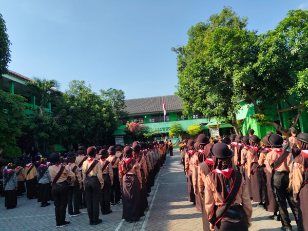 Suasana penuh semangat tampak di halaman SDN Kadipaten 1, Kecamatan Bojonegoro, Minggu (28/09/2025). Sebanyak 390 anggota Pramuka tingkat siaga hingga penggalang mengikuti...