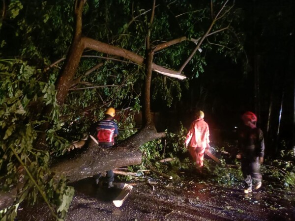 Sejumlah personel Badan Penanggulangan Bencana Daerah (BPBD) Kabupaten Bojonegoro terjun ke lapangan setelah untuk menangani rumah rusak di Desa Wotanngare, Kecamatan Kalitidu....