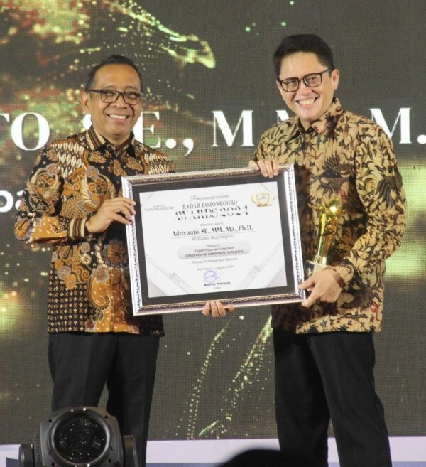 Pj Bupati Bojonegoro Adriyanto meraih penghargaan untuk kategori Inspirational Leadership di Radar Bojonegoro Award 2024. Penyerahan penghargaan digelar Jumat malam (2/8/2024) di...