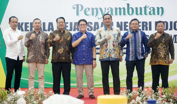 Pj Bupati Bojonegoro Adriyanto mengucapkan selamat datang kepada Muji Martopo, SH, M.Hum sebagai Kepala Kejaksaan Negeri (Kajari) Bojonegoro dalam acara penyambutan Kajari...