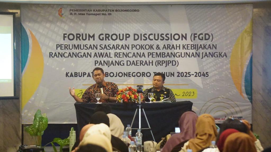 Pemkab Bojonegoro melalui Badan Perencanaan Pembangunan Daerah (Bappeda) mengadakan FGD (focus group discussion) perumusan sasaran pokok dan arah kebijakan RPJPD Kabupaten Bojonegoro...