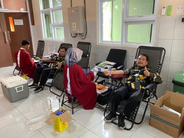 Puluhan pegawai RSUD Kepohbaru, Bojonegoro dan masyarakat mengikuti aksi donor darah, Kamis (11/09/2025). Aksi sosial ini sebagai wujud kepedulian terhadap kesehatan pegawai...