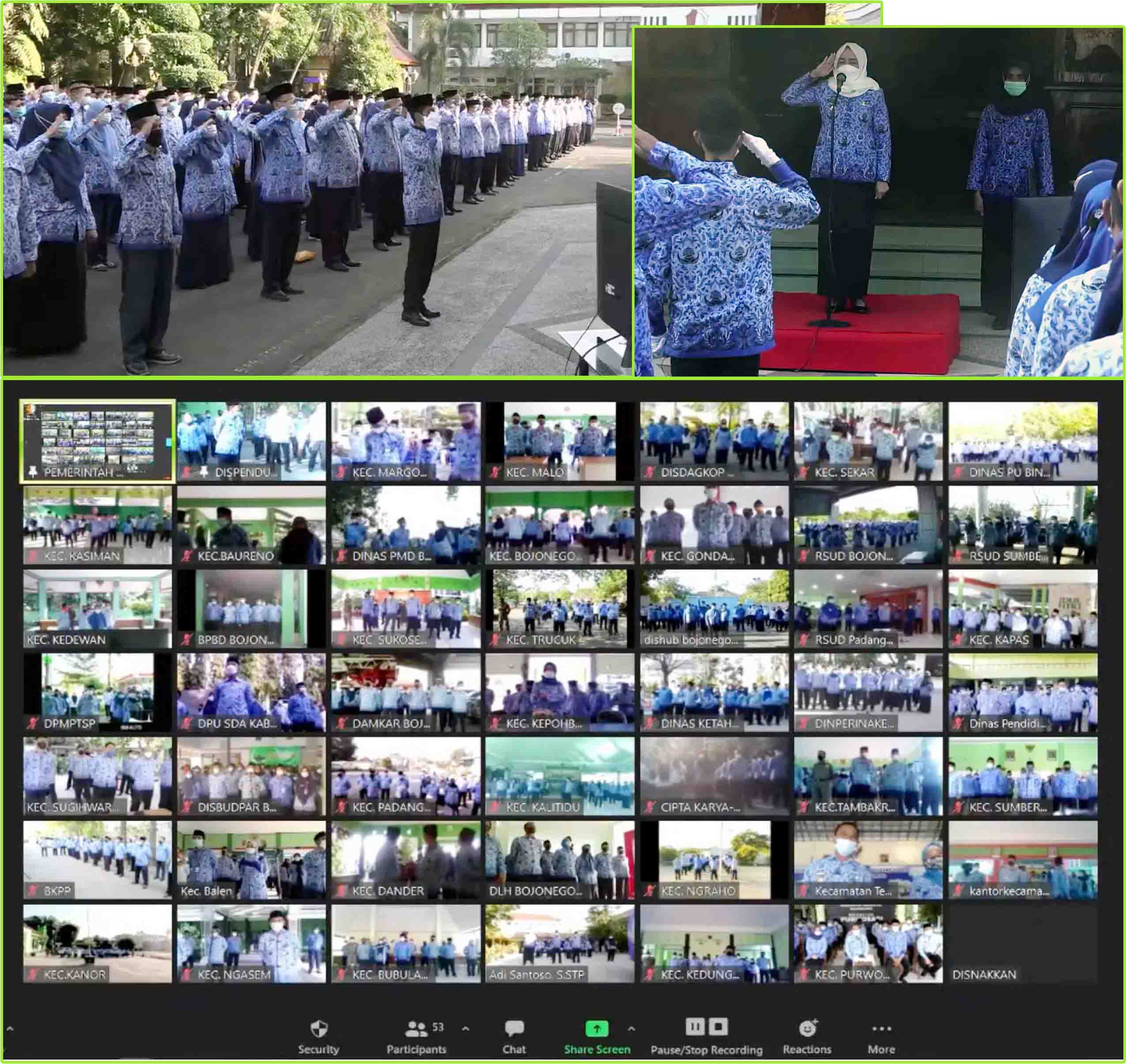 Pemerintah Kabupaten (Pemkab) Bojonegoro menggelar apel virtual pembinaan Aparatur Sipil Negara (ASN), Senin (17/05/2021) berpusat di halaman Pendopo Malowopati Pemkab. Apel setelah...