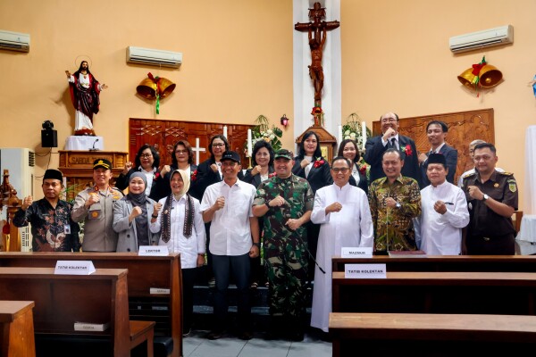 Bupati Bojonegoro Setyo Wahono bersama Wakil Bupati Nurul Azizah serta jajaran Forum Koordinasi Pimpinan Daerah (Forkopimda) mengunjungi sejumlah gereja di wilayah Kota...